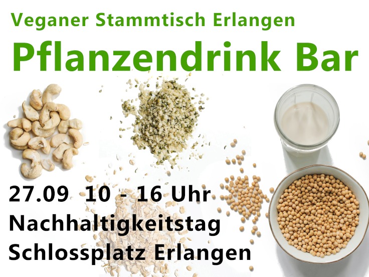 Der Vegane Stammtisch Erlangen betreibt anlässlich zum Nachhaltigkeitstag eine Pflanzendrink Bar für interessierte Besucher*innen.