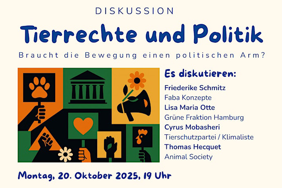 Muss die Tierrechtsbewegung politischer werden? Wie lassen sich Tierrechte am besten durchsetzen: in etablierten Parteien, in Kleinparteien, in der Verwaltung oder außerparlamentarisch? Was können Proteste bewirken? Und wie können Tiere im politischen System angemessen repräsentiert werden?