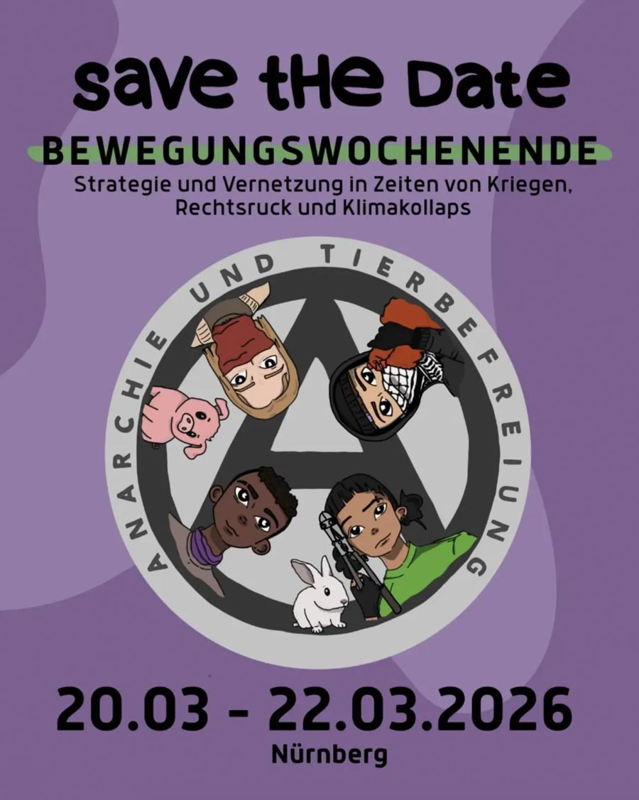 Strategie und Vernetzung in Zeiten von Kriegen, Rechtsruck und Klimakollaps 📅 Fr. 20.03.26 – So. 22.03.26 📍 Nürnberg Rechtsruck, Militarisierung, Klimakollaps, Kriege, Sozialabbau - Wie organisieren wir uns weiter, wenn alles gleichzeitig eskaliert? Wie lässt sich noch Hoffnung und Kraft schöpfen? Dieses Wochenende schafft Raum für Vernetzung, Strategie und gemeinsame Orientierung: für Menschen aus der […]