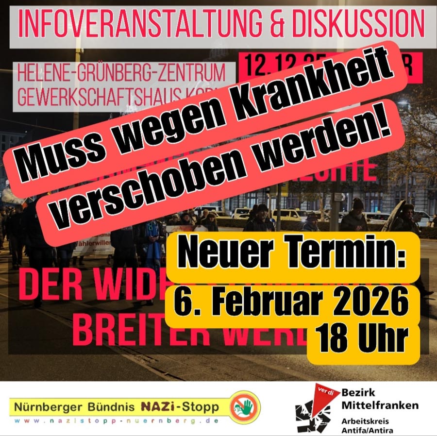 Das Nürnberger Bündnis Nazistopp lädt gemeinsam mit dem ver.di Arbeitskreis Antifa/Antira (Bezirk Mittelfranken) zu einer Informations- und Diskussionsveranstaltung ein. Thematischer Schwerpunkt des Abends ist die strategische Ausrichtung des Widerstands gegen […]